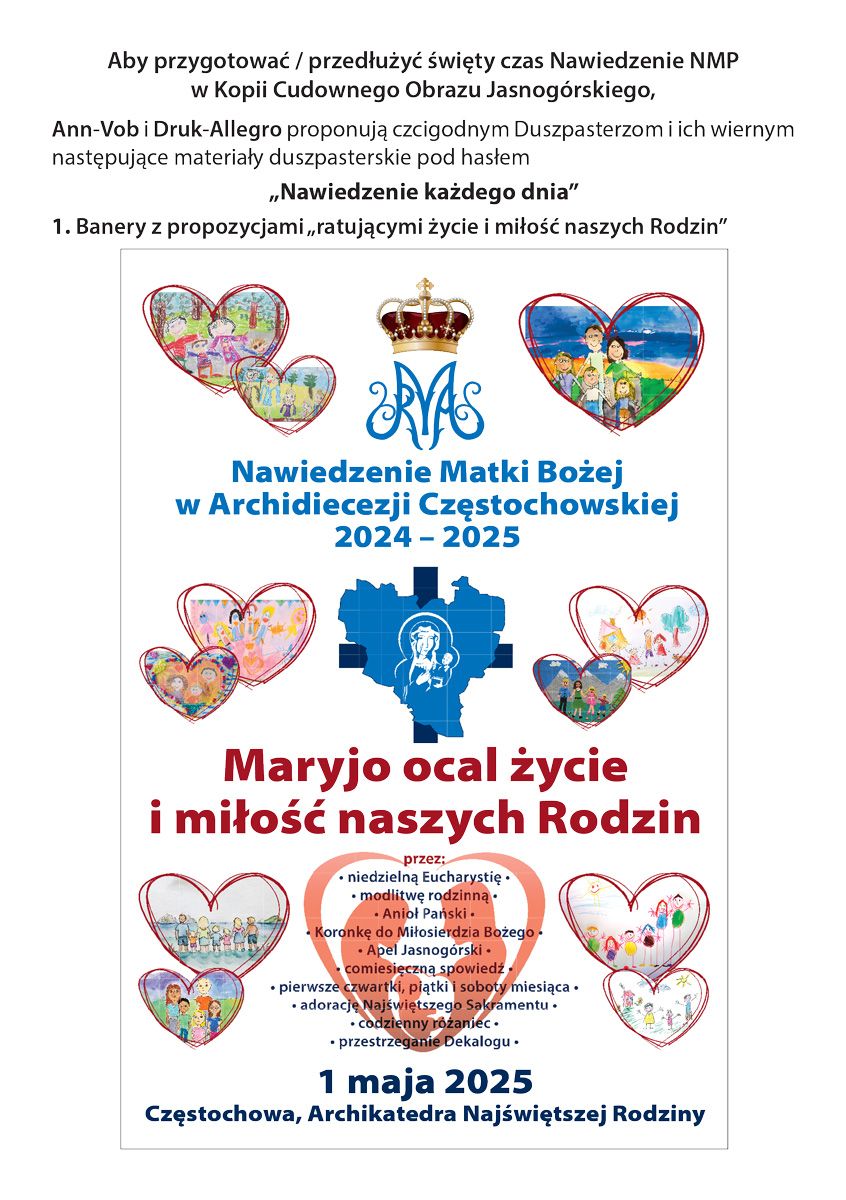 Aby przygotować/przedłużyć Święty Czas Nawiedzenie Najświętszej Maryi Panny w Kopii Cudownego Obrazu Jasnogórskiego ANN-VOB i Druk-Allego proponują czcigodnym Duszpasterzom oraz ich wiernym następujące propozycje duszpasterskie: