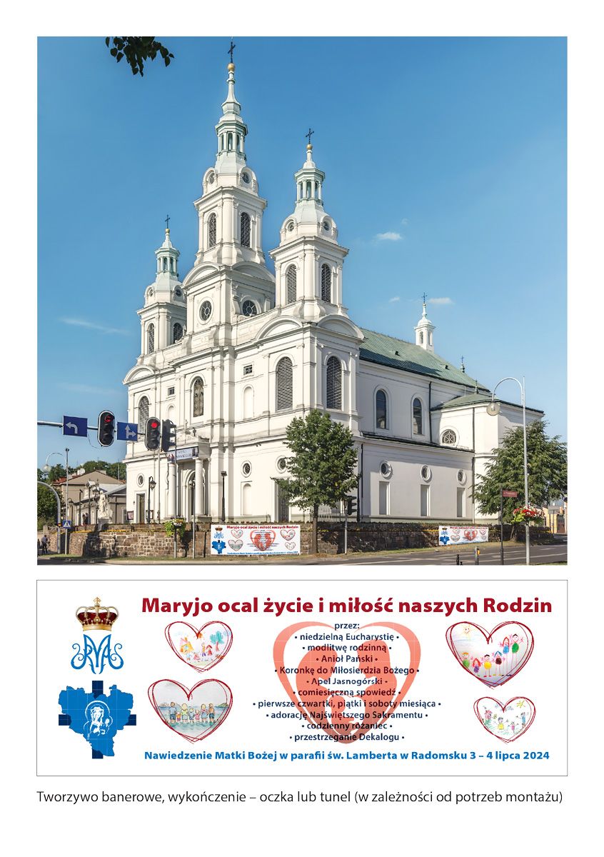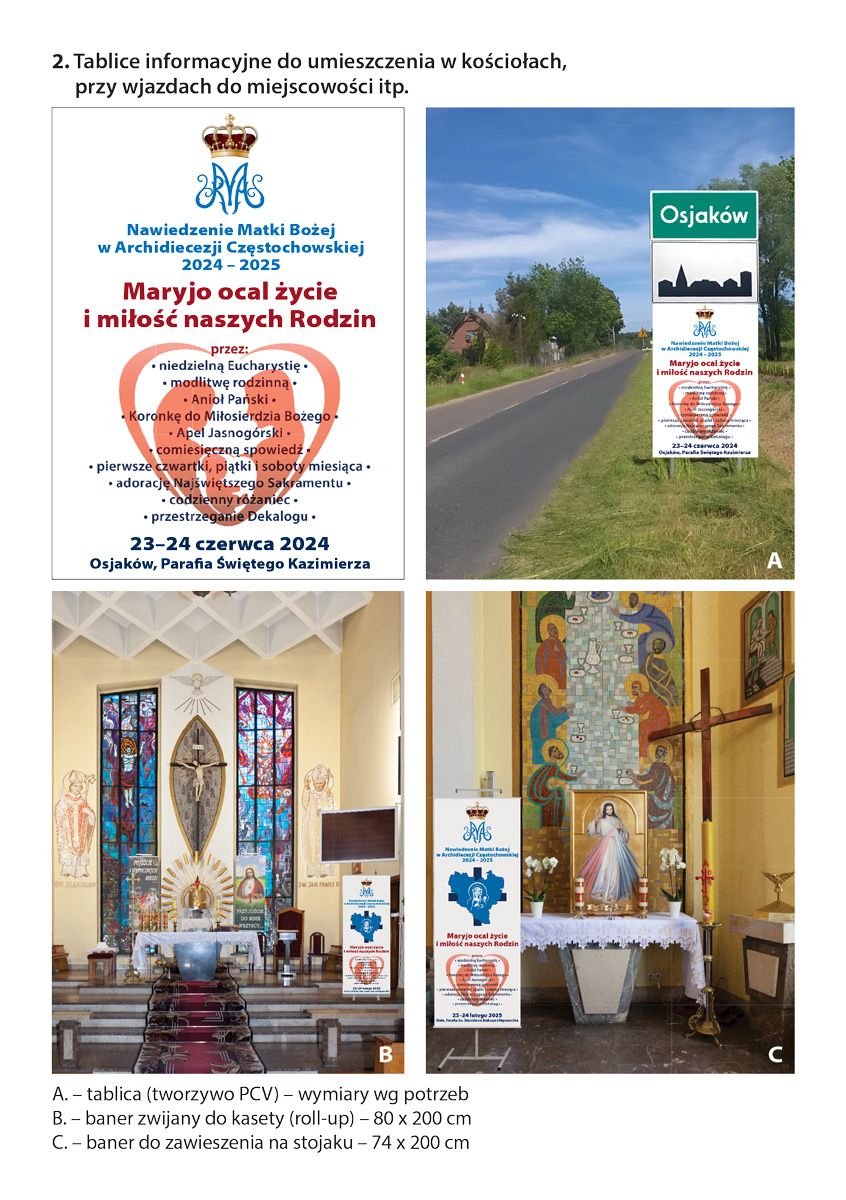 2° tablice informacyjne do umieszczenie w kościołach, przy wjazdach/wyjazdach z miejscowości itp.