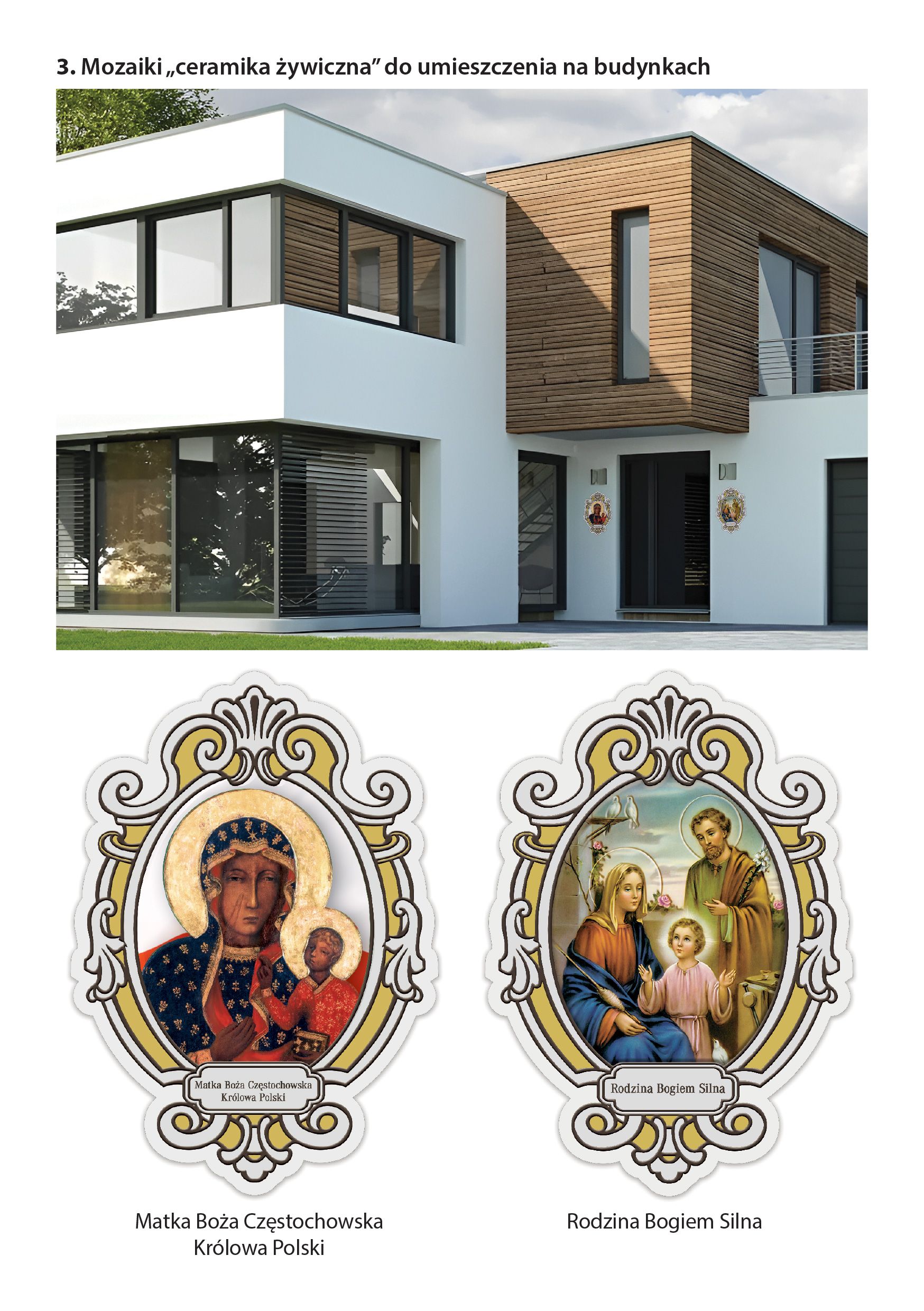 3° Mozaiki „Rodzina Bogiem silna” i „Maryja Królowa Polski” do umieszczenia na domach, plebaniach, budynkach