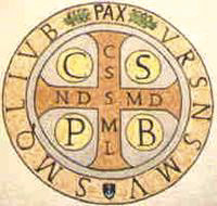 C S P B : « Crux Sancti Patris Benedicti » : Krzyż Świętego Benedykta. .