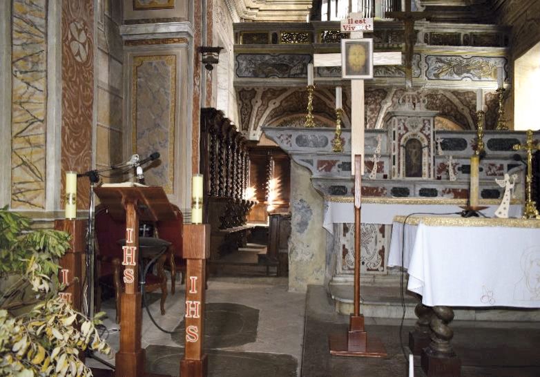Sentencja wyroku (INRI - Iesus Nazarenus Rex Iudaeorum – Jezus Nazareński, Król Żydowski) została zastąpiona sentencją Jego zwycięstwa: JEZUS ŻYJE! Il est Vivant!
