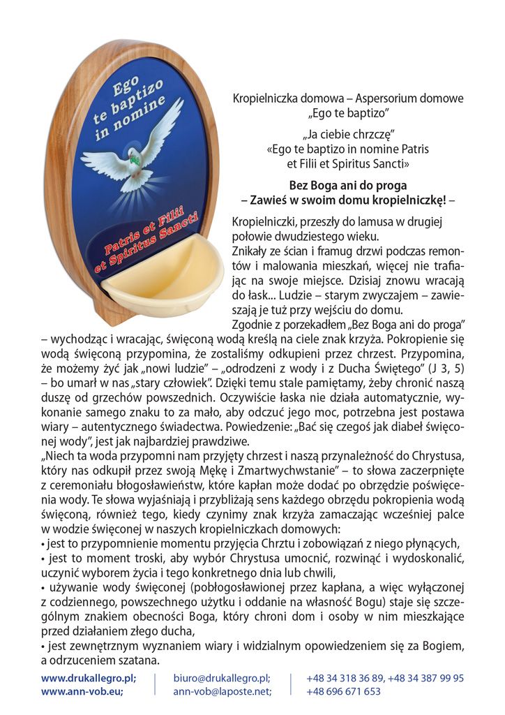 5) Ego te baptizo – próba „wypromowania” prawdziwej szatki chrzcielnej zamiast używanego powszechnie „śliniaczka” który już nawet nie jest symboliczny. Jest po prostu śmieszny i wyprany z jakiegokolwiek znaczenia