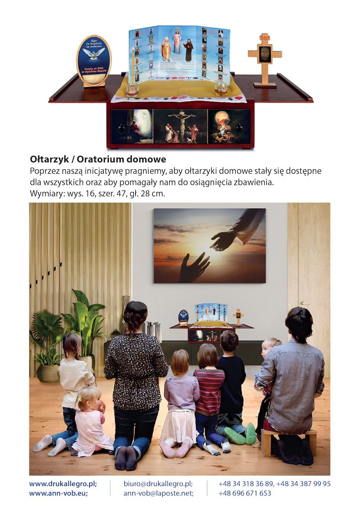 7) Peregrinus – Oratorium/Ołtarzyk domowy i Niezbędnik Pielgrzyma. Inspiracją zaś był apel Biskupa Tarnowskiego Andrzeja Jeża o tworzenie ołtarzyków domowych